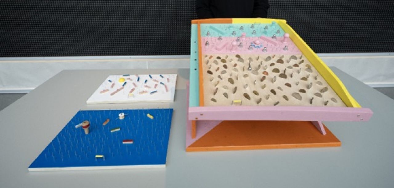 drveni okvir (45 × 53 × 63 cm) i četiri modularne igraće ploče dimenzija 44 × 29 × 1,5 cm