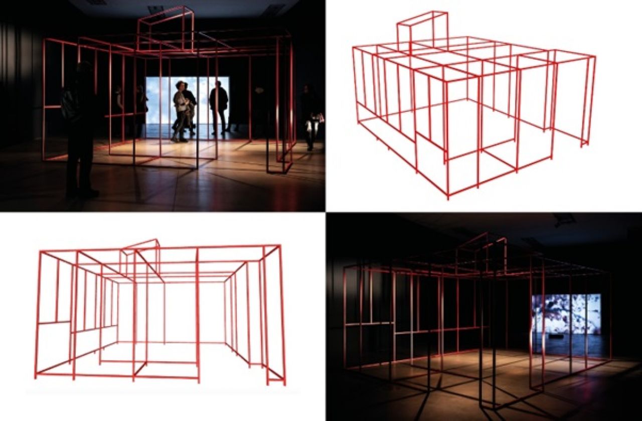 prostorna instalacija napravljena od 50-300 novčića od zemlje i sjemena rogača