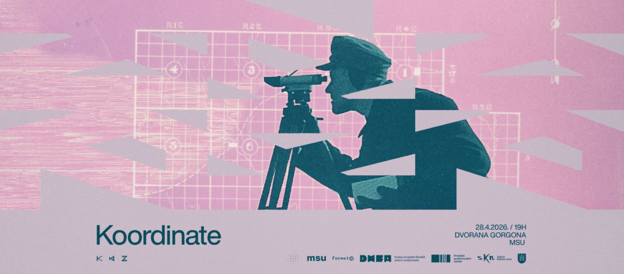Pozivamo vas na projekciju finalnih radova nastalih u sklopu prvog programa Koordinate: mjesta filmskog eksperimenta, platforme za umrežavanje audiovizualnih umjetnika koje zanima istraživanje nenarativnih audiovizualnih procesa i praksi. Projekcija će se održati u utorak, 28. 4. 2026. u 19 sati u dvorani Gorgona Muzeja suvremene umjetnosti u Zagrebu.