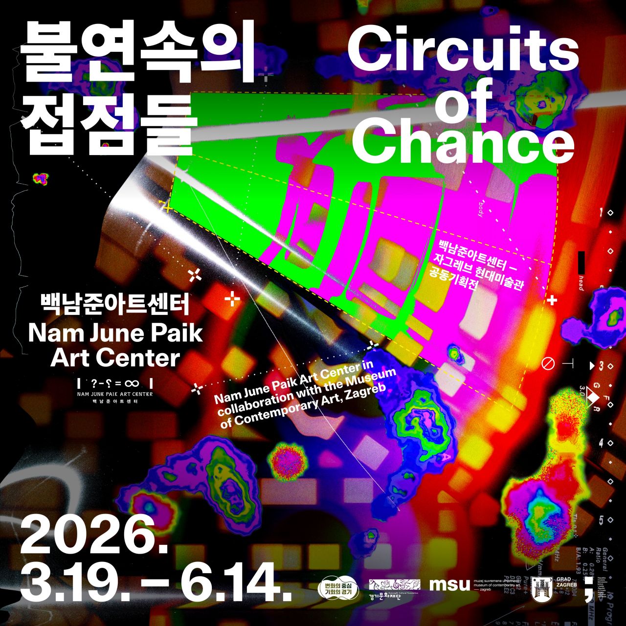 Nam June Paik Art Center 2026. otvara svoja vrata izložbom Circuits of Chance, koja je rezultat dugogodišnje suradnje s Muzejem suvremene umjetnosti Zagreba. Izložba okuplja radove uglavnom hrvatskih umjetnika, istražujući nevidljive veze i rezonancije s praksom Nama Junea Paika. Paikova misao da se „razvio feedback novih kontakata koji rađaju nove sadržaje, a novi sadržaji rađaju nove kontakte” odražava dinamiku koju izložba želi prikazati – mreže odnosa koje se iznova stvaraju i transformiraju. Iako potječu iz različitih konteksta, radovi Paika i hrvatskih umjetnika neočekivano se preklapaju, otvarajući prostor za višeslojnu interakciju i nove, zajedničke signale.